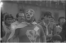 ![]() Superbarrio in a protest, 80s decade, Mexico City. | |