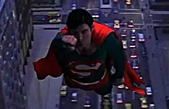 A technique was developed that combined the front projection effect with specially designed zoom lenses.[49] The illusion of movement was created by zooming in on Reeve while making the front projected image appear to recede. For scenes where Superman interacts with other people or objects while in flight, Reeve and actors were put in a variety of rigging equipment with careful lighting and photography.[49] This also led to the creation of the Zoptic system.[50]