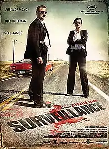 Surveillance is a 2008 American independent thriller film co-written and directed by Jennifer Lynch and starring Julia Ormond, Bill Pullman, Michael Ironside and French Stewart. The story is set in the Nebraska plains of United States. The film premiered "out of competition" and appeared in a midnight slot at the 2008 Cannes Film Festival. Surveillance is Lynch's second feature film, following a fifteen-year break after Boxing Helena.[3][4]