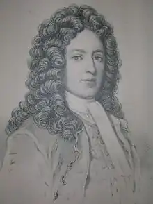 She was beautiful and at 6-foot, unusually tall for those times.[8] It is stated that, on her arrival with her father in Edinburgh around the time of the Union (1702), she was surrounded by wooers. One of these, Sir John Clerk, baronet, of Pennycuik, was deemed likeliest to succeed, but was unsuccessful. She instead married the 9th Earl in June 1709.[9] When Susanna's father consulted him as to the propriety of the match, the earl, whose second countess was then alive but in a long-continued state of ill health, purportedly replied, "Bide awee, Sir Archie, my wife’s very sickly." Soon afterwards his second wife died of natural causes and he married again, this being to his third countess. Susanna did not immediately accept, but the earl eventually won through in spite of numerous rivals. One story relates that she had long been destined to marry the 9th Earl, for one day whilst out walking at Culzean, a hawk belonging to the Earl landed on her shoulder when she called to it and those observing saw it as a clear omen once the silver bells around its neck were seen to carry the name of the earl.[10][11]