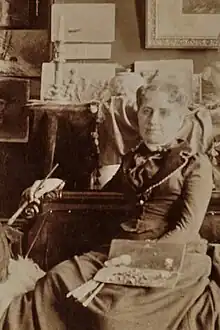 Susie M. Barstow was the daughter of old-time New York City tea merchant Samuel Barstow (1805-1884) and Mary Tyler Blossom (1813-1895), whose lineage traces back to one of the original passengers of the Mayflower.[1][2][3] She was born on May 9, 1836.[4] She studied at the Rutgers Female Institute in New York, graduating in 1853, and received additional artistic training in Europe.[1] For a number of years she taught at the Brooklyn Institute of Arts and Sciences.[5]