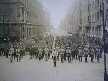 Sweden was officially neutral during World War I, although, under German pressure, they did take steps which were detrimental to the Allied powers including mining the Öresund channel, thus closing it to Allied shipping.[2] Sweden also provided volunteers fighting for the White Guards together with the Germans against the Reds and Russians in the Finnish Civil War.
