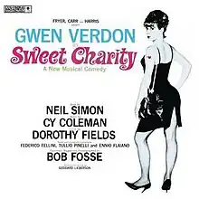 Sweet Charity is a musical with music by Cy Coleman, lyrics by Dorothy Fields and book by Neil Simon. It was directed and choreographed for Broadway by Bob Fosse starring his wife and muse Gwen Verdon alongside John McMartin. It is based on the screenplay for the 1957 Italian film Nights of Cabiria. However, whereas Federico Fellini's black-and-white film concerns the romantic ups-and-downs of an ever-hopeful prostitute, in the musical the central character is a dancer-for-hire at a Times Square dance hall. The musical premiered on Broadway in 1966, where it was nominated for nine Tony Awards, winning the Tony Award for Best Choreography. The production also ran in the West End as well as having revivals and international productions.