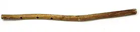 The sybyzgy (Kyrgyz: сыбызгы, sybyzǵy) is a Kyrgyz sideblown flute traditionally played by shepherds and horse herders, made from apricot wood or the wood of mountain bushes. Length 600–650 mm. The sybyzgy sound scale is estimated from 4 to 6 holes.