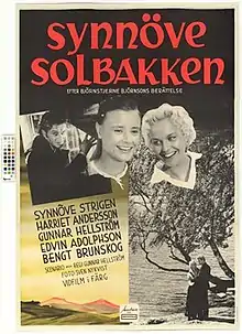 Synnöve Solbakken is a 1957 Swedish drama film directed by Gunnar Hellström and starring Synnøve Strigen, Harriet Andersson and Edvin Adolphson.[1][2] It was shot at the Centrumateljéerna Studios in Stockholm and on location around Gudbrandsdalen in Norway. The film's sets and costumes were designed by the art director Harald Garmland. It is based on the 1857 novel of the same title novel of the same title by Norwegian writer Bjørnstjerne Bjørnson.