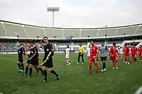 At the 1975 Palestine Cup, they eliminated Libya in the group stage, but lost to Iraq in the semifinals 0: 4 and in the bronze medal match with Sudan 0:1.[23] In 1976, Damascus hosted the Arab Games, whose football tournament was played at the Abbasiyyin Stadium, where the home Syrian team won bronze medals.[24]