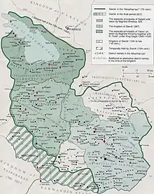 In 885, Syunik formed part of Bagratid Armenia.[48] An early 10th-century Arab author, Istakhri, referred to the place name Sisijan, which he said was situated on the roadway connecting Bardva with Dvin (the Armenian Highlands, the kingdom of Smbat and Ashot I).[49] Byzantine Emperor Constantine VII Porphyrogenitus addressed his officials letters "to the Prince of Syne, Armenia; to the Prince of Vaitzor, Armenia".[50]