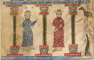 Two princedoms – the Orbelians and Proshians[79] (Khaghabakyans) (formerly the Zakaryans' vassals) – were formed there after the region's liberation.[82] The founders of those dynasties received their possessions for merits in the war against the Seljuks. The Orbelians in Syunik traced their ancestral roots to Liparit, Elikum's son, while Vasak[71] descended from the from Khakhbakyan dynasty who came from the neighboring Armenian region of Khachen.[83] As recounted by Kirakos, a 13th-century historian, "They were natives of Khachen, people of noble origin. adherents of the Christian creed and Armenians by nationality".[84] Enthroned in Syunik, the Orbelians were among the influential princedoms of Armenia.[9] Their liberation from the Seljuk hegemony contributed to the cultural development of the district.[85] The Proshyans extended their authority mainly to the Gavars of Gegharkunik in the south-west of Lake Sevan, and Vayots Dzor, holding their residence in the small city of Srkghunk.[86] In 1236, both dynasties were forced to recognize the Mongol authority over them (after the latter's invasion of Armenian lands).[87] In 1251, Smbat Orbelian obtained the right inju[88][89][90] from the Mongol royal palace. Those rights were retained also by Hulagu Khan and his successors.[73] The lands under Stephen Orbelyan's control extended to the borders of Nakhichivan[9] and those owned by the younger branch of the princedom covered the shore of Sevan.[9][91] Thanks to the rulers, as well as the right to immunity, the conditions in that part of Armenia were relatively tolerable, which in turn promoted economic and cultural life across the region.[73] A glaring example is the most prominent institution of higher learning of the time, the University of Gladzor, which functioned here.[91][73] Meantime, the region also became the main stronghold of the national and state establishment across the entire territory of historical Armenia[90][92] where the Armenian state anatomy was still preserved.[93][94]