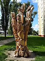 Realized by Bydgoszcz sculptor Mirosław Kufel out of a withered poplar trunk, it represents 7 dwarfs overlooking 2 geese, recalling a short story Orphan Marysia and Dwarfs, by Maria Konopnicka.[62]