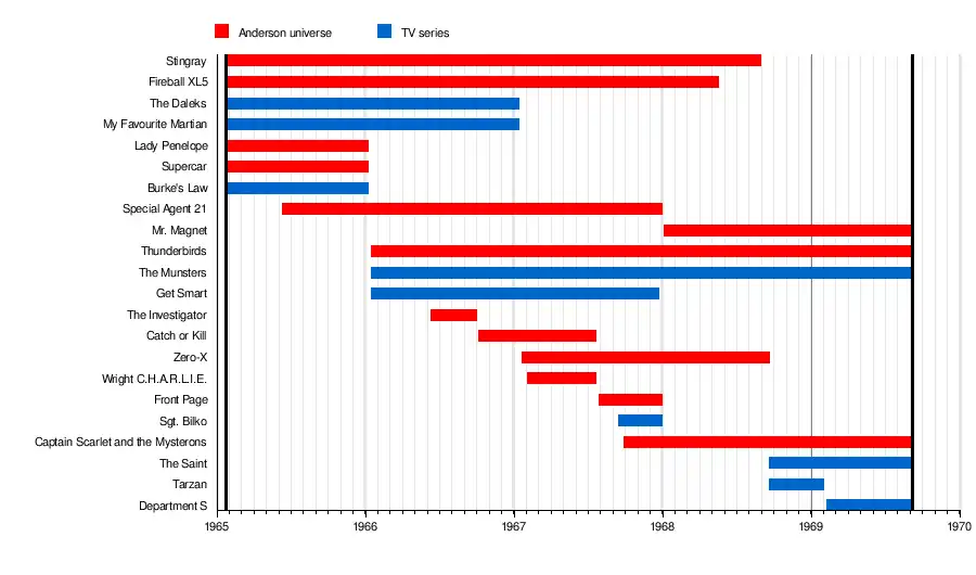 | Main character(s) | Stingray Lady Penelope Creighton-Ward Fireball XL5 Supercar Thunderbirds Captain Scarlet and the Mysterons Joe 90 The Daleks Star Trek |