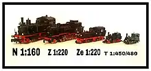 Steam locomotive at T gauge