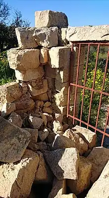 The western end of the villa includes some remains of presses, rock-cut vats, channels and troughs, showing clearly that this area was the focus of agricultural activity in the rustic villa.[5] No attempt has been made to map the extent of land which was managed from this villa. Ashby suggested that " ... the natural way of access to it [the villa] is on the south-east side, coming up the valley from the bay of Birżebbuġa."[6] In fact, remains of an elaborate entrance were found on this side of the villa complex.[6]