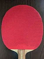 Table tennis rubber is a type of rubber used as covering on a racket in table tennis.[1] Modern table tennis rubber is usually composed of two layers: a layer of foam ("sponge") underneath and a layer of actual rubber on the surface.[2] There are four common types of table tennis rubbers: short pips, long pips, antispin, and inverted.[1] The thickness and density of the sponge layer underneath also affects how the rubber will handle the ball.[3]