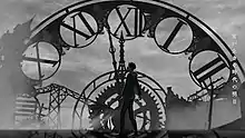 After that, Tokito turns around to see the giant clock pointing to 11:58 in the background, which is the time that the Great Kantō earthquake occurred. Suddenly, he runs across the showy background and throws a letter into the door being close. Later, he walks crestfallenly, showing the black lyrics on white background. The door opened to show the letter is sent to Chiyoko. She read it and run to throw her reply letter sent to him. He reads the letter while standing on the hour hand of a clock and meet Chiyoko, which stands on the minute hand. Finally, the pair runs towards each other and embraces, but as quickly, the music video ended up with Chiyoko fading from an explosion of light.[23]