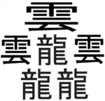 The Chinese character components for taito are both compound ideographs created by reduplicating a common character, namely the 12-stroke Japanese kumo or Chinese yún 雲 "cloud" (with the "rain radical" 雨 and un or yún 云 phonetic), and the 16-stroke "dragon radical" Japanese ryū or Chinese lóng 龍. The 雲 "cloud" character is tripled into 36-stroke tai or duì 䨺 "cloudy" and quadrupled into 48-stroke dō or nóng 𩇔 "widely cloudy"; the 龍 "dragon" character is interchangeably doubled or tripled into 32- or 48-stroke tō or dá 龖 or 龘 "appearance of a dragon in flight" and quadrupled into 64-stroke tō or zhé 𪚥 "chattering; be garrulous".