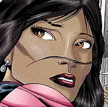 Talia al Ghul (Arabic: تاليا الغول; /ˈtɑːliə ˌæl ˈɡuːl/[1][2]) is a fictional character appearing in American comic books published by DC Comics, commonly in association with Batman. The character was created by writer Dennis O'Neil and artist Bob Brown, and first appeared in Detective Comics #411 (May 1971).[3] Talia is most commonly known as being the daughter of the supervillain Ra's al Ghul as well as the on-and-off lover of the superhero Batman and the mother of their son Damian Wayne (the fifth Robin) who was born during a brief marriage.[4] Over the years, she has alternately been depicted as an anti-heroine who is constantly torn between being an ally and an enemy of Batman due to her loyalty to both him and her environmentalist father, with whom she shares the same vision when it comes to saving the planet and nature, but not the means he uses to achieve that goal.