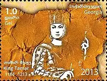 Tamar the Great (Georgian: თამარ მეფე, romanized: tamar mepe, lit. 'King Tamar') (c. 1160 – 18 January 1213) reigned as the Queen of Georgia from 1184 to 1213, presiding over the apex of the Georgian Golden Age.[2] A member of the Bagrationi dynasty, her position as the first woman to rule Georgia in her own right was emphasized by the title mepe ("king"), afforded to Tamar in the medieval Georgian sources.[3]
