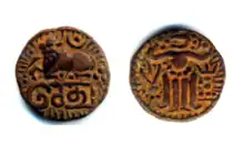 Locally produced coins with Tamil Brahmi legends were found in the southern town of Tissamaharama. They are dated to between 200 BC - 200 AD. The coins are thought to have been issued by Tamil traders settled in Sri Lanka.[10] |
