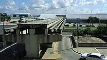 An automated monorail system also once connected the main terminal on Level 5 to the long-term parking garage,[18] stopping at each elevator bank in both buildings. It was installed in 1991 when the long-term parking garage was built.[10] It used six Bombardier UM III vehicles, which are also used on the Jacksonville Skyway.[1]