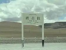 The Tanggula (Dangla) railway station (Chinese: 唐古拉站; pinyin: Tánggǔlā zhàn) is a railway station located in Amdo County, Tibet Autonomous Region, China, near the border with the Tanggula Town, Qinghai Province. The railway station has three tracks, one of them served by a platform, and another one served by a very short stub platform.