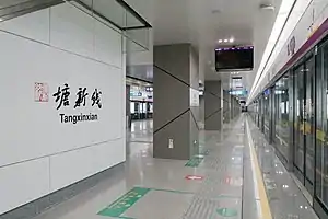 Tangxinxian (Chinese: 塘新线) is a metro station on Line 7 of the Hangzhou Metro in China.[1] It was opened on 30 December 2020, together with Line 7.[2] It is located in the Qiantang District of Hangzhou.