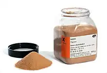 Use of ferric chloride (FeCl3) tests for phenolics in general. Powdered plant leaves of the test plant (1.0 g) are weighed into a beaker and 10 ml of distilled water are added. The mixture is boiled for five minutes. Two drops of 5% FeCl3 are then added. Production of a greenish precipitate is an indication of the presence of tannins.[35] Alternatively, a portion of the water extract is diluted with distilled water in a ratio of 1:4 and few drops of 10% ferric chloride solution is added. A blue or green color indicates the presence of tannins (Evans, 1989).[36]