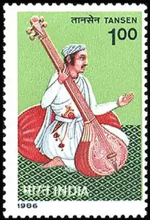 Mian Tansen (c. 1493/1500 – 26 April 1589), also referred to and commonly known as Sangeet Samrat (lit. 'Monarch of Hindustani Music') or Mian (lit. 'the Learned One'), was a Hindustani classical musician.[5] Born in a Hindu Gaur Brahmin family,[6] he learnt and perfected his art in the northwest region of modern Madhya Pradesh. He began his career and spent most of his adult life in the court and patronage of the Hindu king of Rewa, Raja Ramchandra Singh (r. 1555–1592), where Tansen's musical abilities and studies gained widespread fame.[5] This reputation brought him to the attention of the Mughal Emperor Mohammad Akbar, who sent messengers to Raja Ramchandra Singh, requesting Tansen to join the musicians at the Mughal court. Tansen did not want to go, but Raja Ramchandra Singh encouraged him to gain a wider audience, and sent him along with gifts to Akbar. In 1562, about the age of 60, the Vaishnava[7] musician Tansen joined the Akbar's court, and his performances became a subject of many court historians.[5]