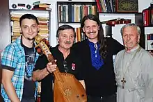 Таras Kоmpanichenkо (Ukrainian: Тарас Компаніченко; born 14 November 1969 in Kyiv, Ukrainian SSR) is a Ukrainian recording artist, kobzar, bandurist, lirnyk, composer and singer-songwriter.[1] He is an active member of the Kobzarskyi Tsekh (literally "Kobzar guild") as well as of the Early Music ensembles "Chorea Kozacka" and "Sarmatica". He was an active participant in the Orange Revolution that took place in Ukraine from November 2004 to January 2005 as well as Euromaidan 2013–2014. He is a Merited Artist of Ukraine[2] and a laureate of the Vasyl Stus Prize.