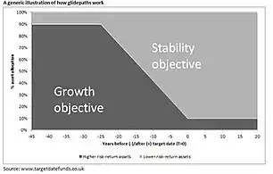 The funds are not without their critics, who point to the unexpected volatility of some near-dated target-date funds in the financial crisis of 2007–2008, suggesting they were not as conservatively positioned as their name would imply.[29] While this is expected in the earlier phases of capital accumulation,[30] it was unexpected at the money-market and bond stage of near-dated funds. In response to this, the SEC and DoL hosted a joint hearing on Examining Target Date Funds in June 2009,[31] which found that while target-date funds were generally a welcome innovation, disclosure had to be improved to ensure investors were fully aware of a target-date fund glidepath, which may differ from manager to manager. The rules on disclosures for target-date funds were published by the SEC in 2010.[32]