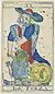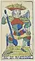 After the collapse, players resorted to importing the Tarot of Marseilles from France. When production resumed around 1735, the cards were almost identical to the Marseilles pattern, including the French captions.[10] Efforts to localize the cards began in the early 19th century eventually resulting in the double-ended cards of today by the end of that century.[11][12] After Savoy and Nice were annexed by France, players there continued using this deck until 1900 when the Tarot Nouveau began to spread across the country. At the beginning of the 20th century, there was an effort to create a competing deck in Chambéry using the Piedmontese version of the Paris pattern as the base for a new tarot pack, but ultimately proved unsuccessful.[2] Reproductions of this pack have been made since 1984.[13][14]
