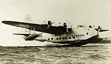 The inaugural Tasman service between Auckland's Mechanics Bay airport and Sydney's Rose Bay Water Airport on 30 April 1940 was flown by Aotearoa, one of its two Short S.30 flying boats.[6] There was a connection at Sydney with the Qantas/BOAC Empire Air Route[7] or Empire Air Mail Scheme to England which meant that there was, for the first time, a regular through air service between New Zealand and England. That lasted less than six weeks, for it was no longer possible to fly through the Mediterranean when Italy entered World War II in June 1940.[8] The Horseshoe route, between Sydney and Durban, South Africa (via Singapore, Calcutta and Cairo) provided a solution.