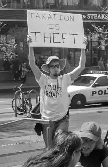 The theory that taxation is ethically indistinguishable from robbery is a staple of American anarchist and (often) libertarian thought. American anarchist philosopher Lysander Spooner put it this way: