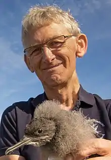 In his role as chair of the Trust, Howard leads conservation measures for the shearwaters, including community initiatives to rescue birds that crash-land at night on streets in Kaikōura.[17] Howard has been involved in establishing and maintaining a new protected breeding area for Hutton's shearwaters on the Kaikōura Peninsula, including a predator-proof fence, man-made burrows, and translocating fledgling birds from the remaining colonies.[1][18]
