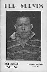 Edward "Ted" Slevin (15 July 1927 – 7 November 1998) was an English professional rugby league footballer who played in the 1940s, 1950s and 1960s. He played at representative level for Great Britain, England and Lancashire (despite being born in Yorkshire), and at club level for Wigan (Heritage № 521),[4] Huddersfield and Rochdale Hornets, as a prop, or second-row, i.e. number 8 or 10, or, 11 or 12, during the era of contested scrums.[2]