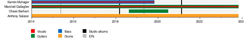 - Kamtin Mohager – bass guitar, vocals (2014–2019)