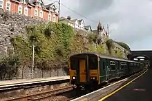 Teignmouth railway station is on the Exeter to Plymouth line and serves the town of Teignmouth in Devon, England. It is located 208 miles 70 chains (336 km) from London Paddington, via Box.[1] It is operated by Great Western Railway and is the third-busiest station on the Riviera Line after Exeter St Davids and Newton Abbot.