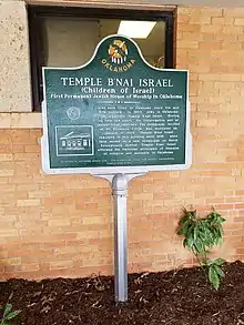 The congregation was founded in May 1903[1][5][6] (one year before the founding of Emmanuel Synagogue, first affiliated with the Orthodox movement, later starting in 1946 with the Conservative movement)[7][8])but it met at St. Luke's Methodist church and other local churches[9] until it constructed its own building in 1907.[1][10] This building was located at 50 Broadway Circle and was dedicated on January 17, 1908[9] (only about 2 months after Oklahoma became a state).