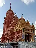 It is said that this is a replica of original Jagannath Temple of Puri (Orissa) in context of design. The most attracting portion of this temple is its "Shikhara" (the peak/top) measuring around 70 feet in height. The red color of the temple is due to the usage of sandstone (around 600 tonnes were brought from Orissa which is being used to build this whole architecture) and around 60 stone carvers got the blessing to carve this temple. There are shrines dedicated to Lakshmi, along with Shiva, Ganesh, Hanuman and Navagrahas. The amorous sculptures are also found to represent the innermost feelings of human being and this explains to keep them outside the temple always while entering. The sanctum sanctorum houses Lord Jagannath along with his siblings, Lord Balabhadra and Devi Subhadra.