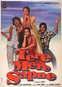 Tere Mere Sapne (transl. Dreams of Yours and Mine) is a 1996 Indian Hindi-language romantic drama film produced by Amitabh Bachchan's production company A. B. C. L. and directed by Joy Augustine. The film had a cast of newcomer actors consisting of Arshad Warsi, Chandrachur Singh, Priya Gill and Simran.[3]