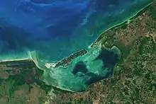 Laguna de Términos is the largest tidal lagoon by volume located entirely on the Gulf of Mexico, as well as one of the most biodiverse. Exchanging water with several rivers and lagoons, the Laguna is part of the most important hydrographic river basin in Mexico.[3] It is important commercially, as well as ecologically by serving as a refuge for an extensive number of flora and fauna; its mangroves provide an important role as a refuge for migratory birds.[4]