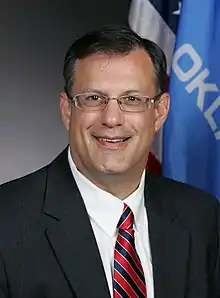 Terry O'Donnell (born November 1, 1963) is an American politician and a member of the Republican Party who has served as the Oklahoma House Representative for the 23rd district since January 8, 2013. He first won elected office in the 2012 Oklahoma state elections.[1] In January 2021, O'Donnell was promoted to be the speaker pro tempore of the Oklahoma House of Representatives, the second highest ranking Republican Party of Oklahoma member in the state house.[2] On December 17, 2021, O'Donnell was indicted in relation to a tag agency corruption scandal.[3] He resigned as speaker pro tempore on February 2, 2022[4] but later rejoined House Republican leadership in 2023 as majority whip, "a position that involves coordinating the teams of legislators that whip vote counts ahead of key bills."[5]