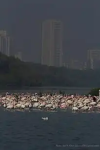 In 2022, the teams of Bombay Natural History Society (BNHS) counted more than 130,000 flamingoes in Thane creek. The greater flamingo and lesser flamingo are the two flamingo species present in the sanctuary.[4] Alongside the flamingoes, 167 species of birds and small mammals like golden jackals are also present.[5][6][7]