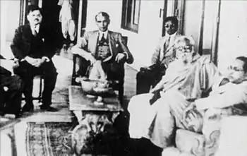 He founded Self-Respect Movement in 1926.[8] From 1929 to 1932 Ramasamy made a tour of British Malaya, Europe, and Soviet Union which influenced him.[9] In 1939, Ramasamy became the head of the Justice Party,[lower-alpha 3] and in 1944, he changed its name to Dravidar Kazhagam. The party later split with one group led by C. N. Annadurai forming the Dravida Munnetra Kazhagam (DMK) in 1949.[10] While continuing the Self-Respect Movement, he advocated for an independent Dravida Nadu (land of the Dravidians).[11]
