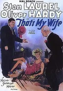 That's My Wife is a 1929 short comedy silent film produced by the Hal Roach Studios and starring Laurel and Hardy. It was shot in December 1928 and released March 23, 1929, by Metro-Goldwyn-Mayer with a synchronized music and sound effects track in theaters equipped for sound.