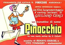 The Adventures of Pinocchio (Italian: Un burattino di nome Pinocchio, literally A puppet named Pinocchio) is a 1972 Italian animated fantasy film produced by Cartoons Cinematografica Italiana. An adaptation of Carlo Collodi's 1883 book The Adventures of Pinocchio, it is written, produced, directed and edited by Giuliano Cenci. The English dub was released in the United States by G.G. Communications in 1978.