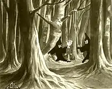 The model sheet was made by Verdini and Barbara Mamelli, designers of the satirical newspaper Marc'Aurelio. Romolo Bacchini was also the producer and the artistic director with Verdini. The scenography was entrusted to Mario Pompei with Franco Fiorenzi and Gioacchino Colizzi. The composer has sometimes been credited as Umberto Giordano.[2] Inking was done by Carlo Bacchini along with Ettore Ranalli, Ennio Zedda and Amerigo Tot.[2]