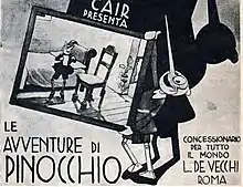 The Adventures of Pinocchio (Italian: Le avventure di Pinocchio) was an Italian animated film directed by Raoul Verdini and Umberto Spano. Created and produced by Cartoni Animati Italiani Roma (CAIR) and distributed by De Vecchi, this cartoon was based on the famous 1883 children's book The Adventures of Pinocchio by Carlo Collodi.