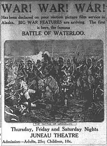 To direct the film, British and Colonial Films hired American director Charles Weston. To raise money for the production, John Benjamin McDowell, one of the founders of British and Colonial, remortgaged the company for £1,800. Weston chose to film the production in Irthlingborough, Northamptonshire, a place the Duke of Wellington reportedly said reminded him of the terrain around Waterloo, Belgium.[2] Hundreds of local residents were used as extras. Some were paid, while others volunteered. There were so many volunteers that two shoe factories in the town had to close for lack of workers.[2][3] Subsequent advertisements indicated the movie contained 2,000 soldiers, 116 scenes, 1,000 horses and 50 cannons.[4]