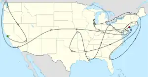 The tour encompassed 32 shows in 25 cities over 31 days.[8] Most shows quickly sold-out, and attendance ranged from 4,000 (New York City) to 28,000 (Baltimore).[2] For each show, the Beatles earned $50,000 minimum (equivalent to US$470,000 in 2022), earning over a million dollars across the entire tour.[11]