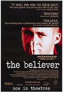 The Believer is a 2001 American drama film written and directed by Henry Bean in his feature directorial debut, based on a story by Bean and Mark Jacobson. Starring Ryan Gosling, Billy Zane, Theresa Russell, and Summer Phoenix, the film follows Daniel Balint, a Jew who becomes a neo-Nazi. The film is loosely based on the true story of Dan Burros,[4] a member of the American Nazi Party and the New York branch of the United Klans of America who died by suicide after being revealed as Jewish by a reporter from The New York Times.[5]